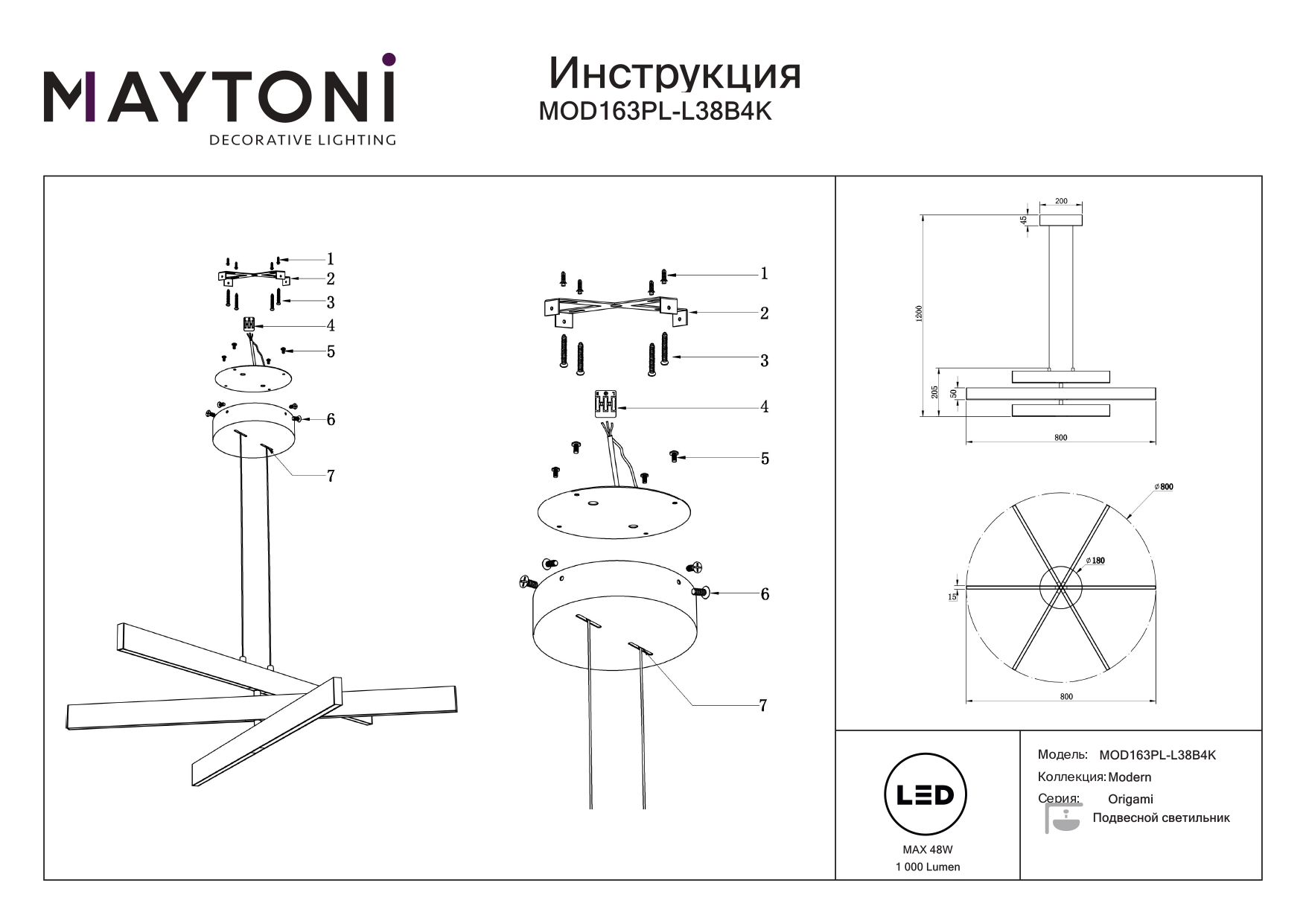 Данную модель MOD163PL-L38B4K с быстрой доставкой спешите купить по цене 18 921 ₽ в магазине 220svet.ru