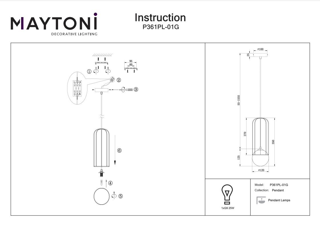 Купить "Подвесной светильник Maytoni Telford P361PL-01G"