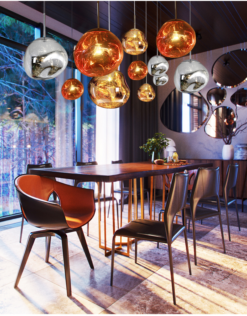 Завораживающая своей магической красотой модель подвесного светильника TH7544/1S28, словно серебристая капля подвижной расплавленной лавы, зависла под потолком. А продолжением уникальной формы плафона является гармонично подобранная металлическая арматура в серебряном цвете. Дизайнеры китайской фабрики Lightday, работая над коллекцией «Шар из лавы», не случайно решили использовать плафоны из выдувного стекла, ведь именно они уже очень давно являются яркими, стильными элементами декорирования интерьеров. Оригинальность данного светильника заключается еще и в том, что внешний вид его меняется в зависимости от выбранного режима работы. Полупрозрачные цветные плафоны во время включения света и матовые шары с зеркальным эффектом после выключения способны украсить интерьер как гостиной, кабинета, кухни, так и стать ярким акцентом в оформлении бара, ресторана, фитнес клуба, отеля, развлекательного центра. Производитель рекомендует использовать для устройства светодиодные лампы с цоколем E27 и мощностью 40 W, что позволяет осветить пространство площадью 5 м.кв. В коллекции «Шар из лавы» представлены светильники в трех цветах – золотой, серебряный и красный, каждый из которых в свою очередь можно заказать в трех размерах, а именно 20смх20см, 28смх27см, 40смх50см. Подобное цветовое и размерное решение позволяет использовать светильник TH7544/1S28 как отдельно висящий элемент освещения, так и объединить несколько вместе, подбирая разные цвета и размеры, тем самым создавая более насыщенную яркую атмосферу в вашем интерьере. Обратите внимание, что провод, на котором подвешен световой прибор, выполнен из светлого материала, что добавляет в восприятие всего пространства легкой воздушности и создает эффект замедленного движения в падении. Кроме того, данный тип подвеса позволяет вам в пределах 1 метра регулировать высоту расположения светильника. При сочетании разных размеров, цветов плафонов, а также разной высоты подвеса, создается иллюзия, что потолок украшен магическим ожерельем из капель расплавленной лавы, добавляя вашему пространству яркости, свежести и уюта. Интернет-магазин 220svet.ru рад предложить нашим покупателям самые выгодные условия для покупки подвесного светильника «Шар из лавы» TH7544/1S28. Мы работаем для того, чтобы вы каждый день наслаждались всем, что заставляет ваш интерьер сиять! Торопитесь сделать заказ в интернет-магазине 220svet.ru!