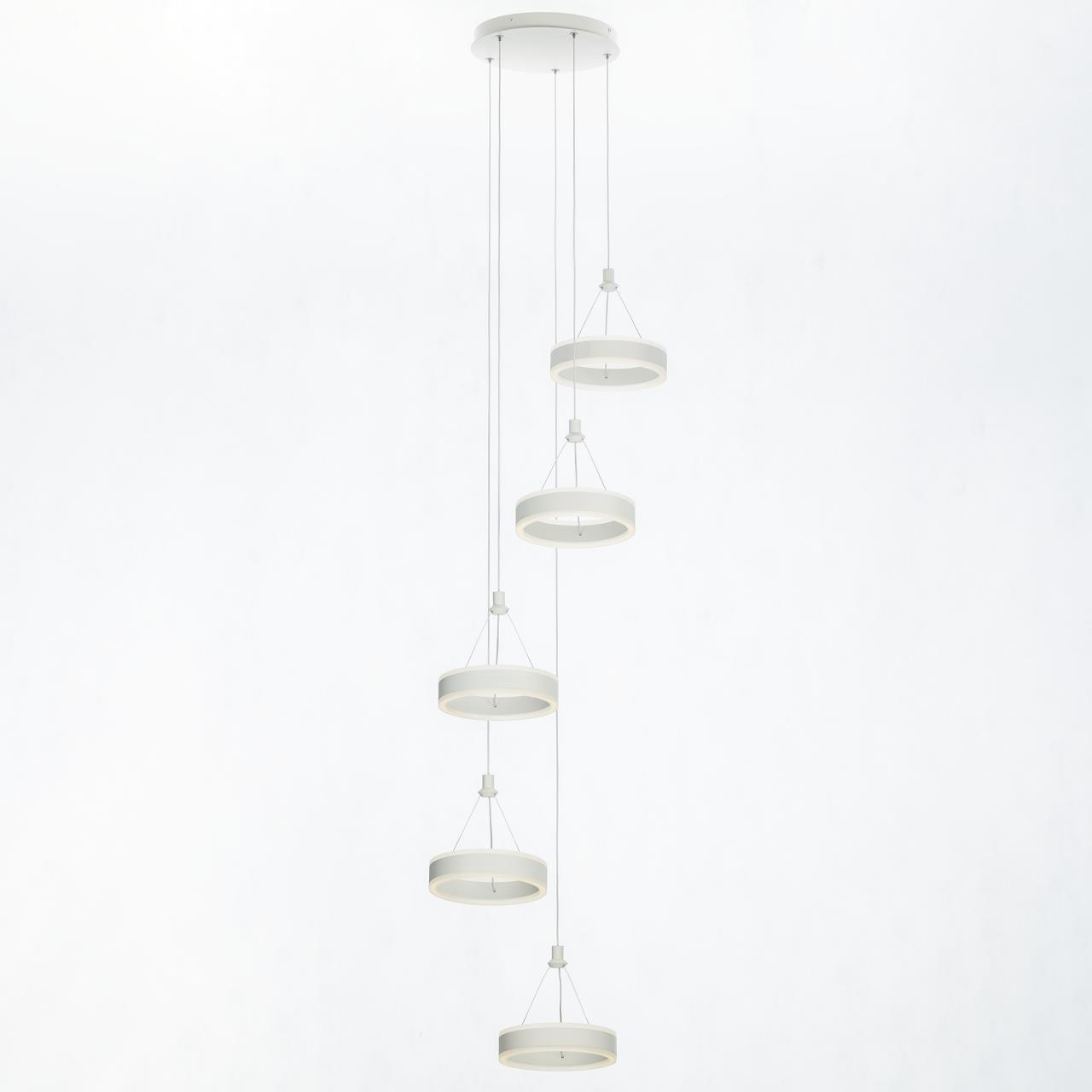 Светодиодный каскадный светильник CL719050 , страна бренда Дания , производитель Citilux относится к коллекции Дуэт выполнен в современном стиле. Корпус металлический, цвет белый матовый. Светильник состоит из круглого основания и пяти подвесных колец. Кольцо - светодиодный модуль, изготовленный из алюминиевого профиля, рассеиватель из оптического полимера. Наличие источников света с двух сторон профиля позволяет равномерно осветить всё помещение. Изделие оснащено встроенным ступенчатым диммером, три уровня яркости – 100-40-15%, управляется обычным настенным выключателем. Мощность 100Вт, цветовая температура 4000К - нейтральный белый свет без мерцания и пульсаций. Крепление подходит для всех видов потолков, в том числе натяжных, тип крепления – планка. Купить модель CL719050 спешите в интернет магазине 220svet.ru