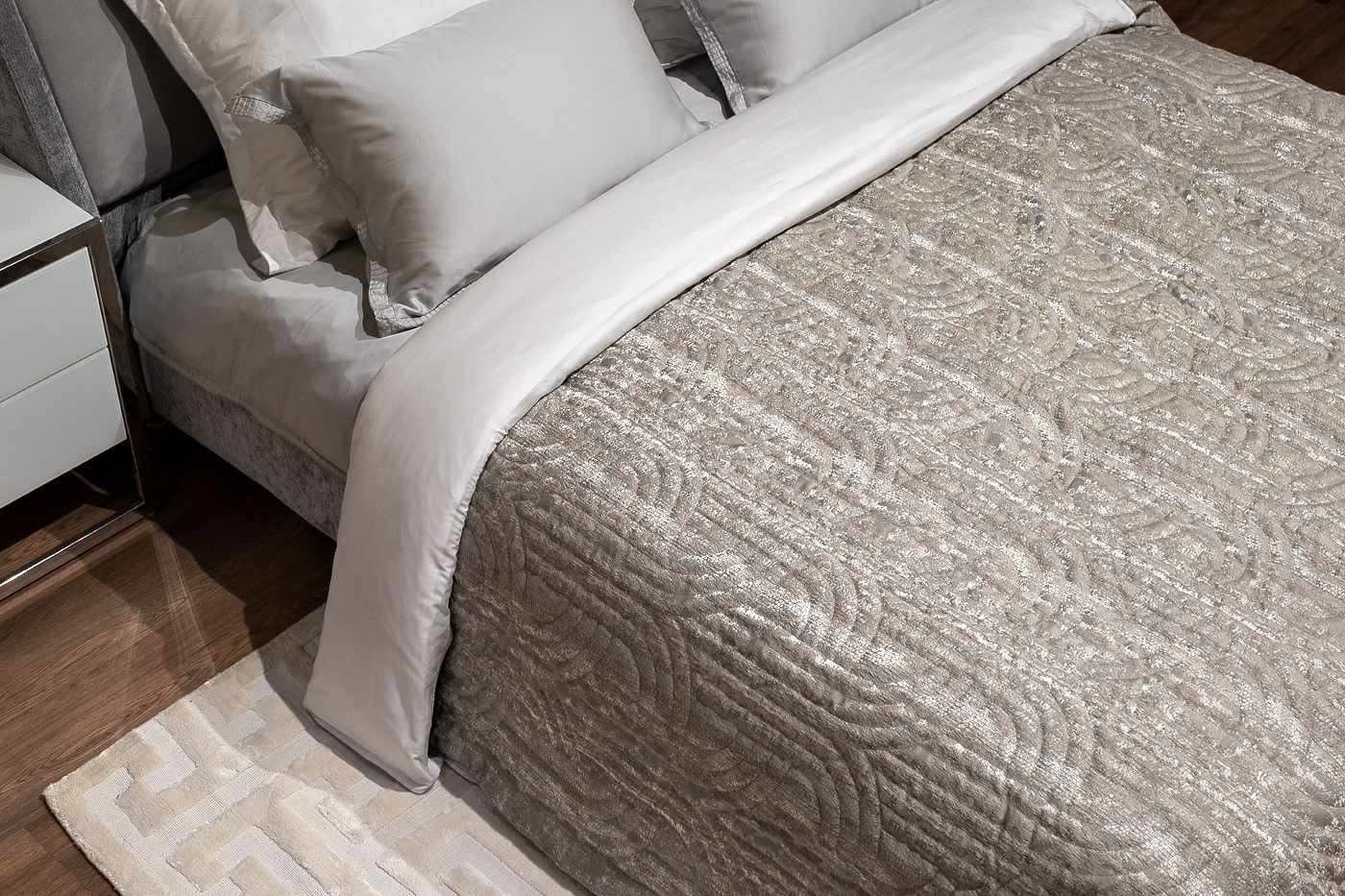 Изделие с таким рисунком подходит для интерьеров, как в классических, так и в современных направлениях, и служит ярким акцентом, притягивающим взгляд. Покрывала изготовлены из прочного полиэстера. Ткани из полиэфирных волокон практически не выгорают на солнце, просты в уходе. Изделие представлено в сером цвете. УХОД: Деликатная машинная стирка при температуре не выше 30 градусов. Отбеливание запрещено. Гладить при средней температуре до 150 градусов. Разрешена сухая химчистка. Разрешена низкотемпературная машинная сушка.