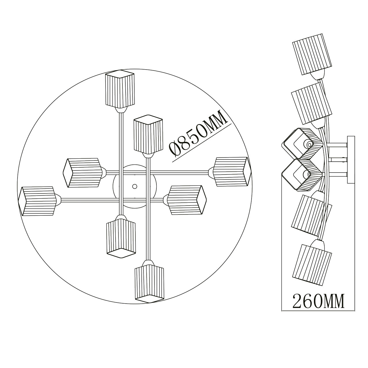 - Направление плафонов: В стороны