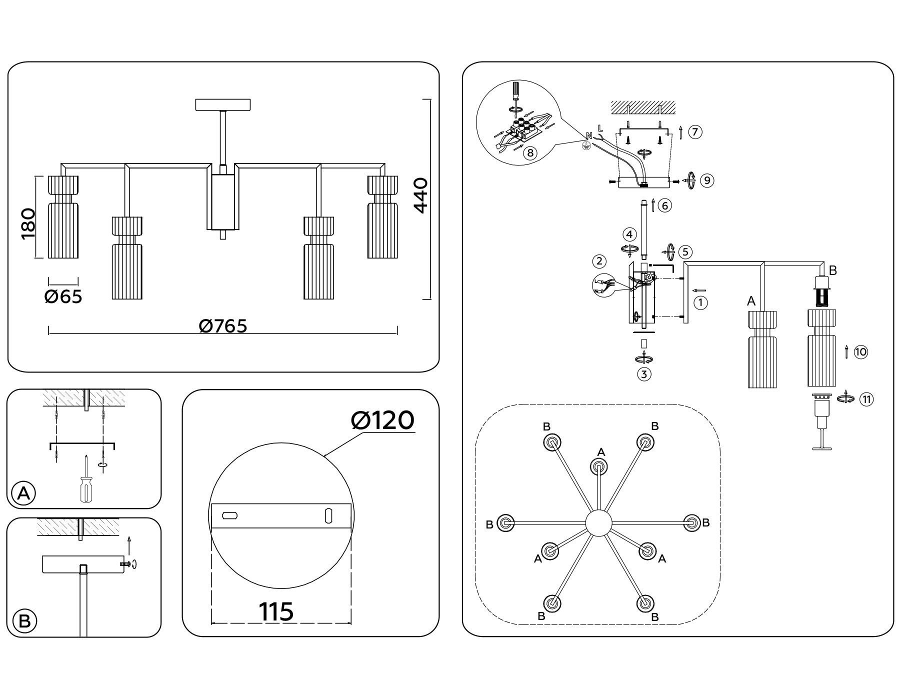- Количество плафонов: 9