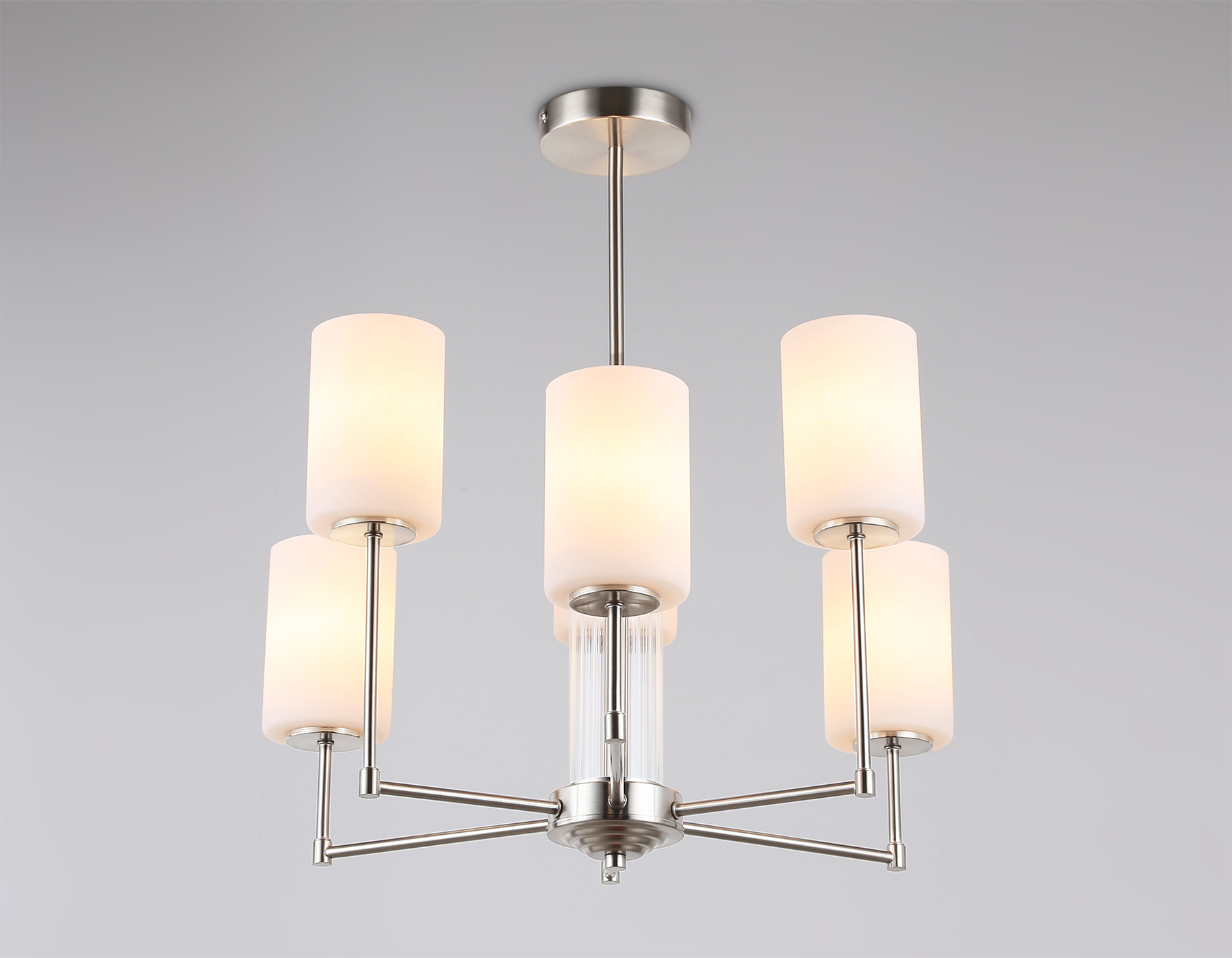 Подвесная люстра из коллекции HIGH LIGHT. Модель LH56211 представлена в стиле неоклассика. Люстра выполнена из металлического каркаса цвета никель и стеклянных матовых плафонов. Для данной модели подойдут лампы с цоколем Е27. Люстра будет прекрасным дополнением в любом помещении.