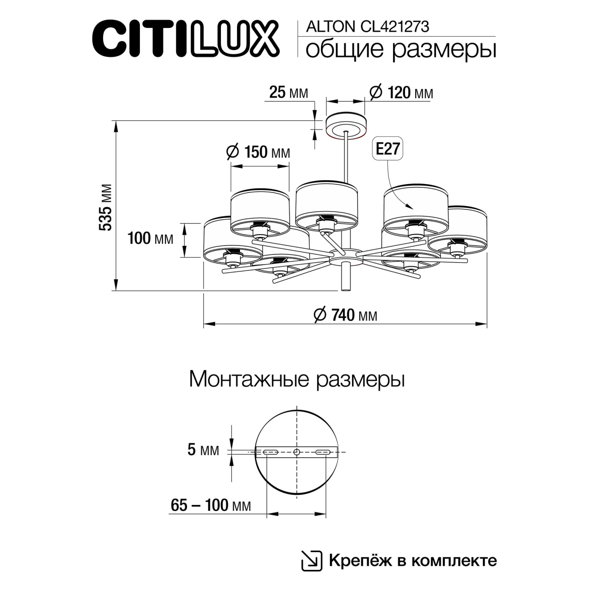 - Диаметр: 740 мм (74 см)