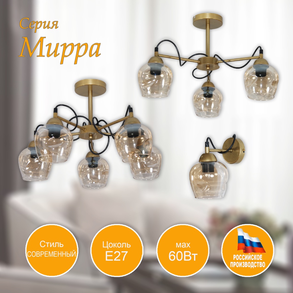 - Цвет плафонов: Янтарный