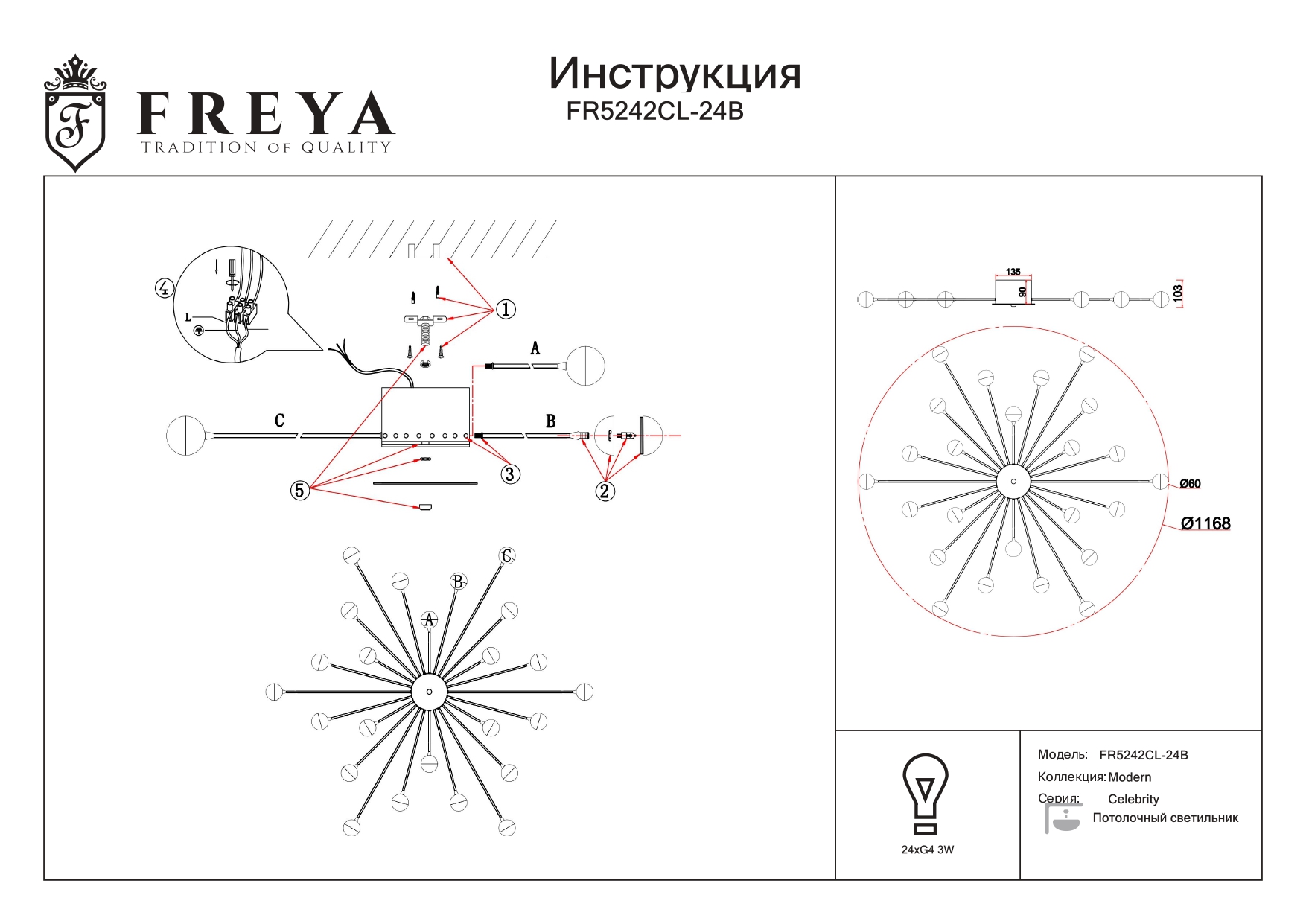 Потолочная люстра Freya Celebrity FR5242CL-24B в Подольске