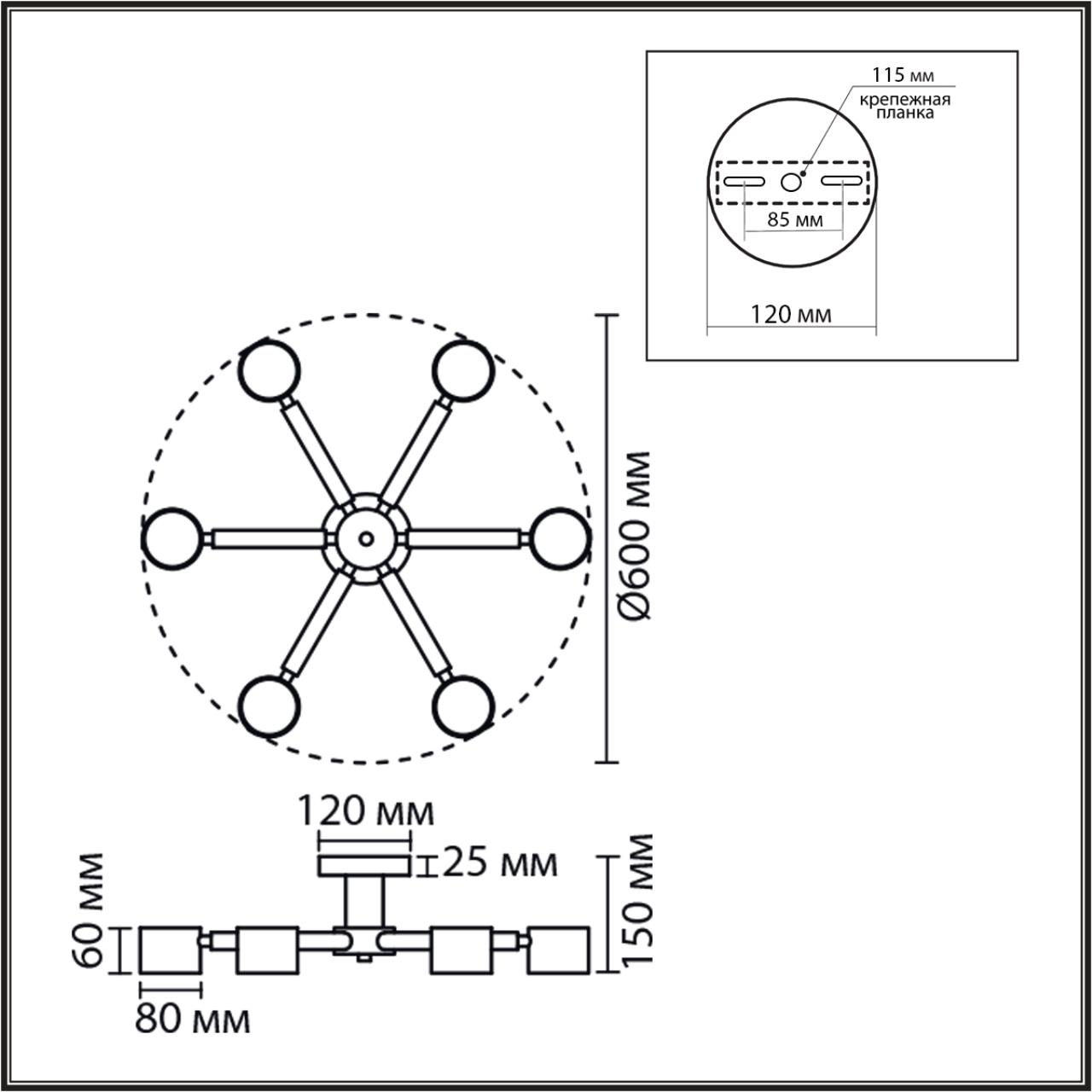 - Количество ламп: 6 шт