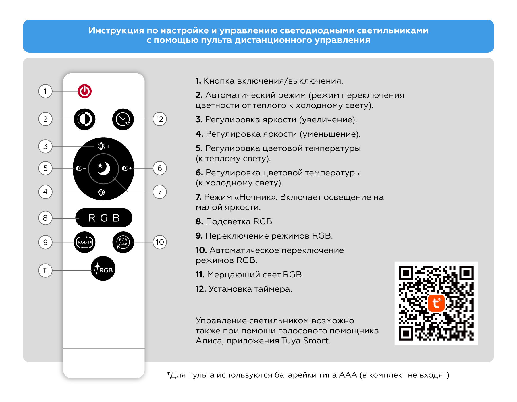 - Цветовая температура, K: 3000-6500-RGB