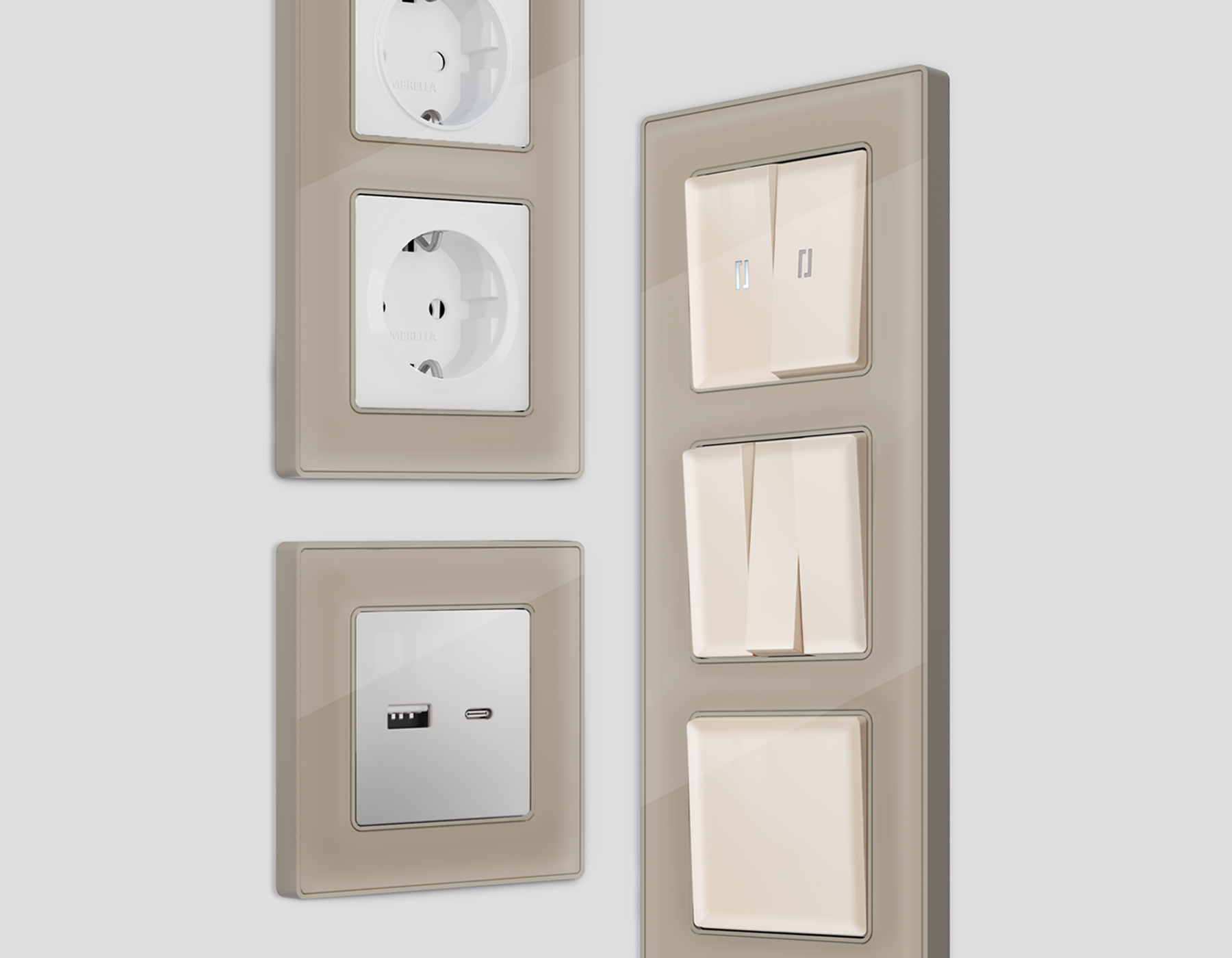 Многогранный ассортимент Ambrella Volt включает в себя механизмы, лицевые панели и рамки, а также комплекты, доступные в различных цветовых решениях. Продукция представлена в модульном исполнении, что позволяет гибко настраивать внешнийвид и функциональность. Вам будет легко заменить лицевую панель, рамку или механизм, найдя идеальное сочетание цветов.