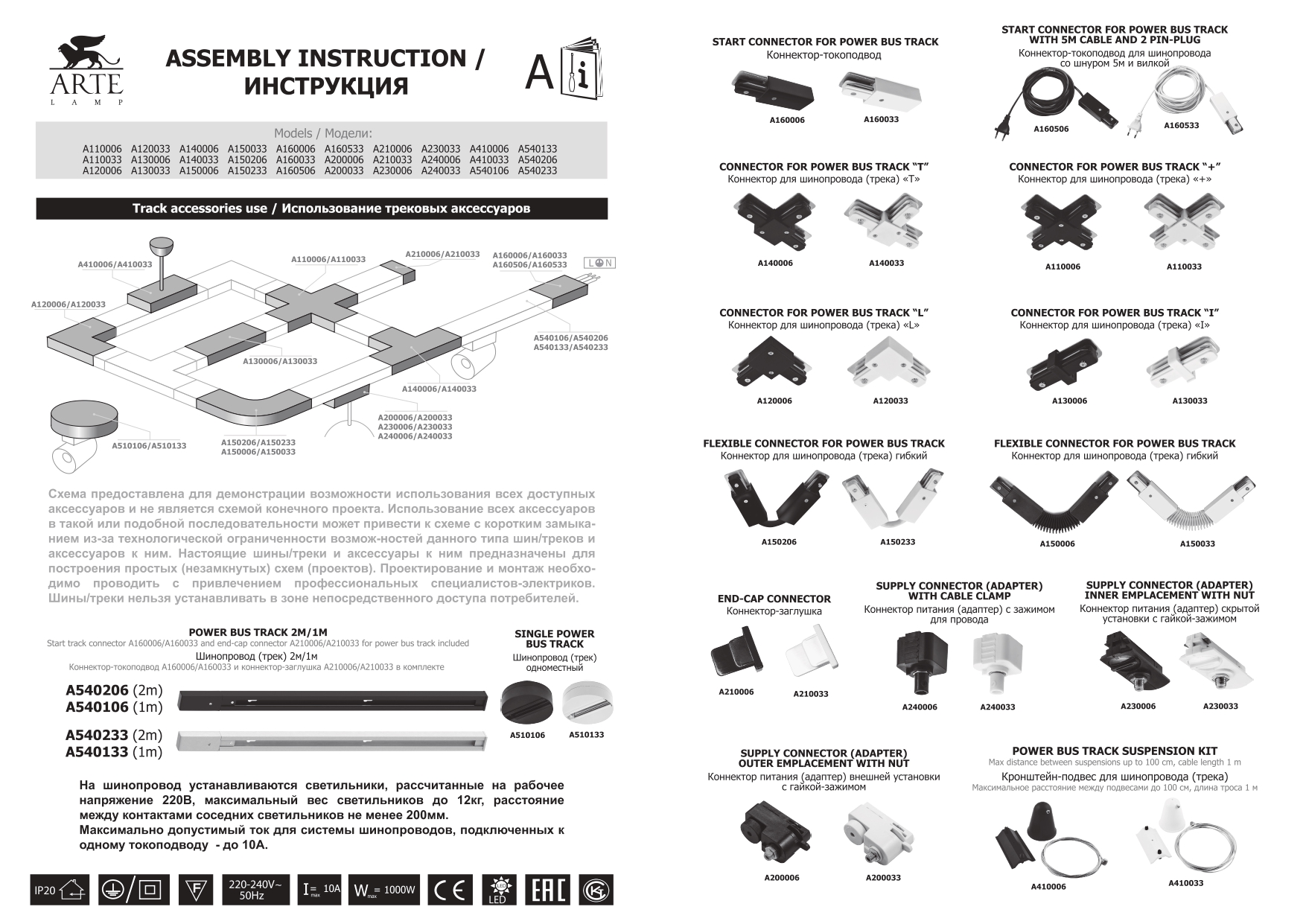 Для подвесного монтажа необходимо дополнительно приобрести кронштейн-подвес Arte A410006 (1м) либо Arte A410106 (2м)