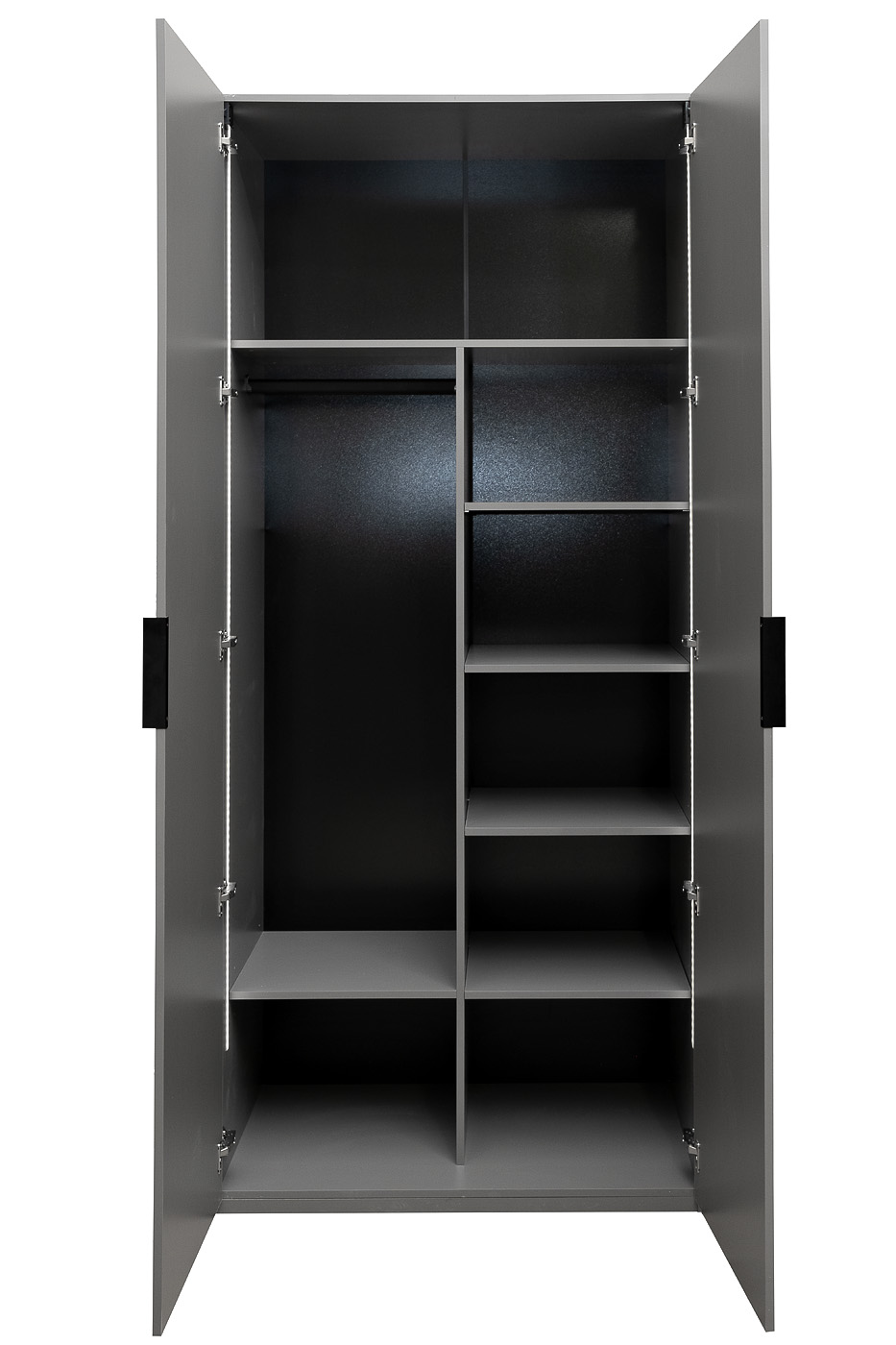 Элегантный двухдверный шкаф станет прекрасным дополнением спальни, гостиной или кабинета, решенных в стиле лаконичного минимализма или ар-деко. Вместительное внутреннее пространство шкафа с полками позволит разместить одежду, книги, документы и другие нео...