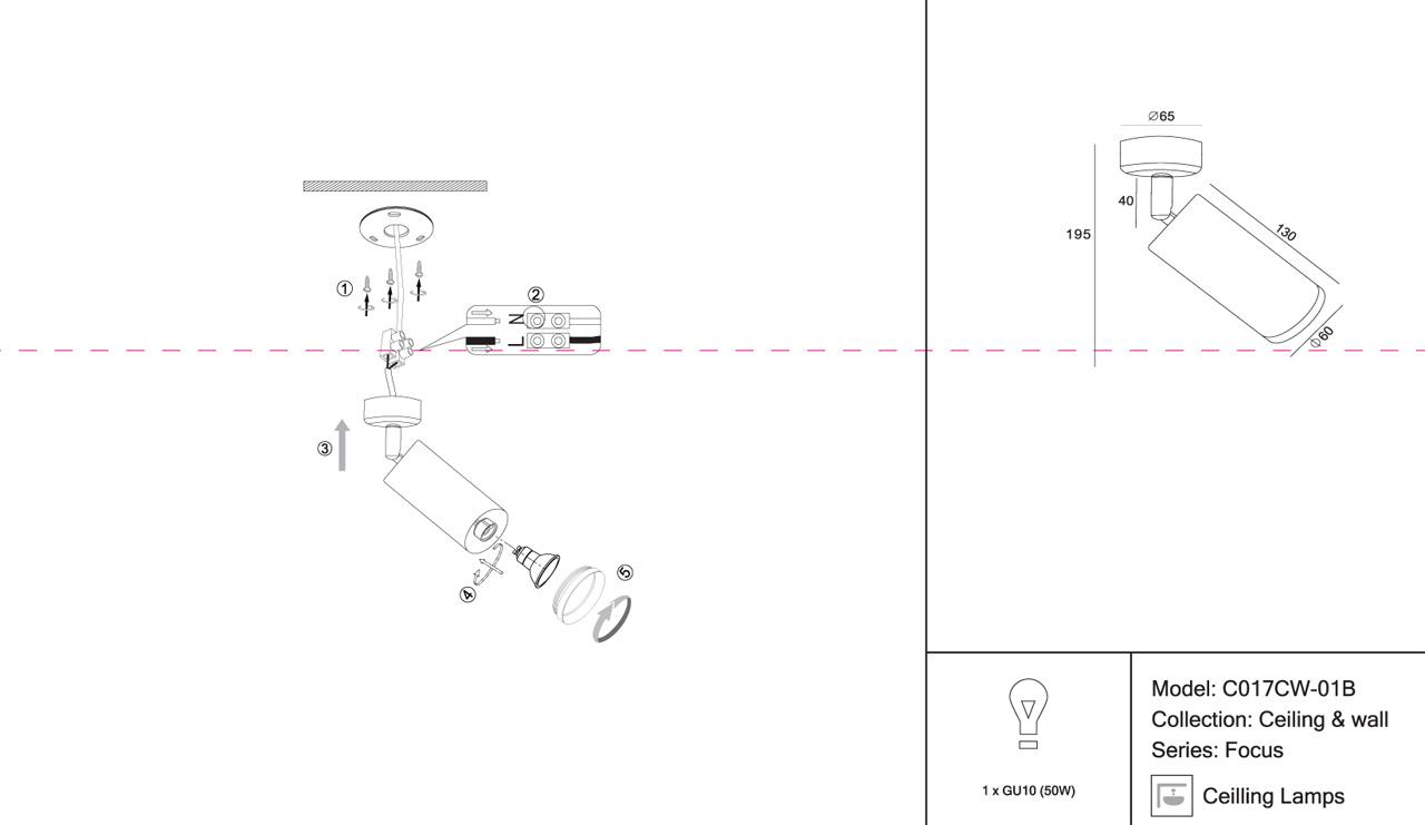 Спот потолочный черного цвета. Модель C017CW-01B, из коллекции Focus от немецкого производителя Maytoni. Светильник состоит из 1 плафонов, форма которых цилиндр, и выполнены они из металла, корпус светильника изготовлен из из алюминия.  Производитель рекомендует приобретать для светильника лампочки Галогеновая с цоколем GU10 мощностью 50W.