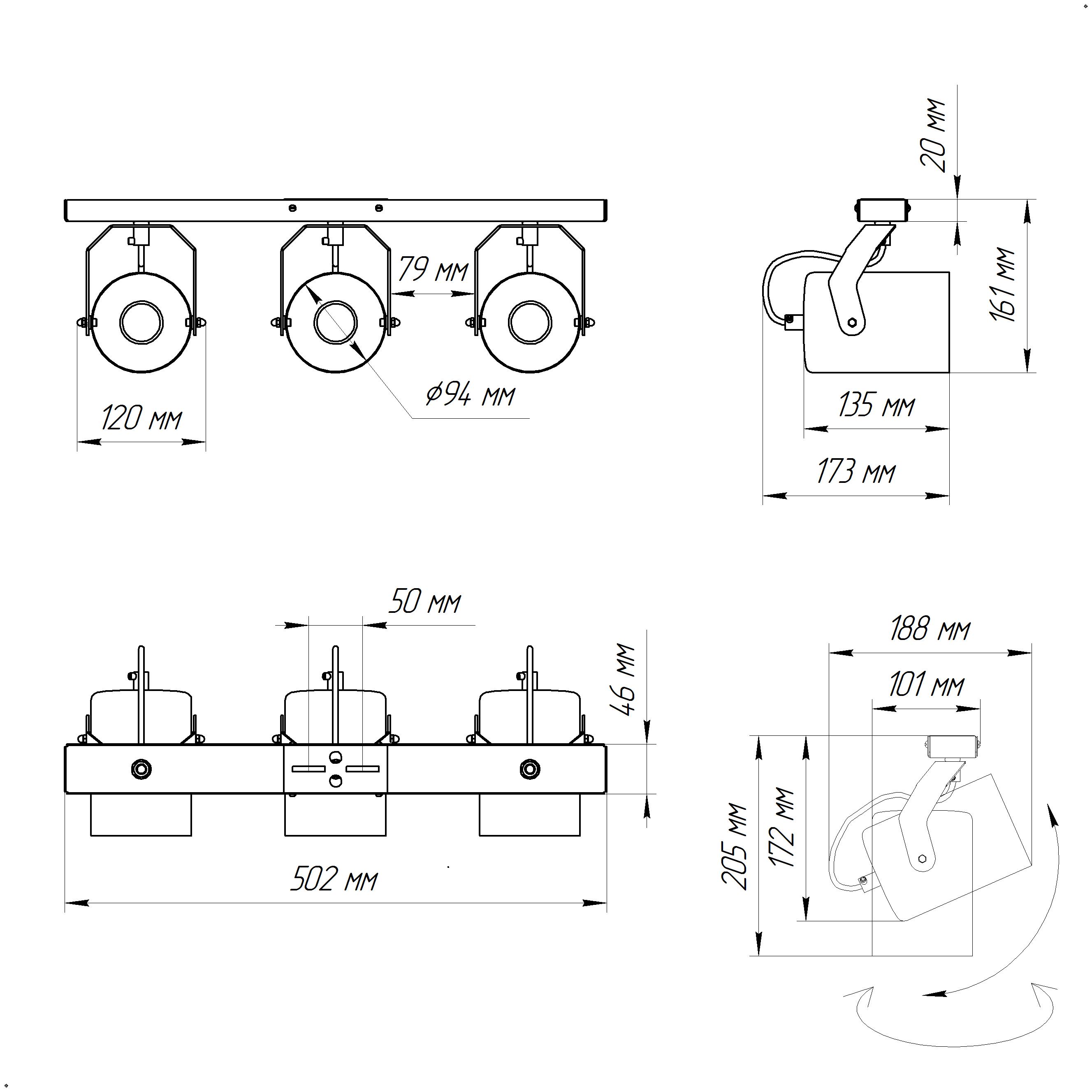 - Количество ламп: 3 шт
