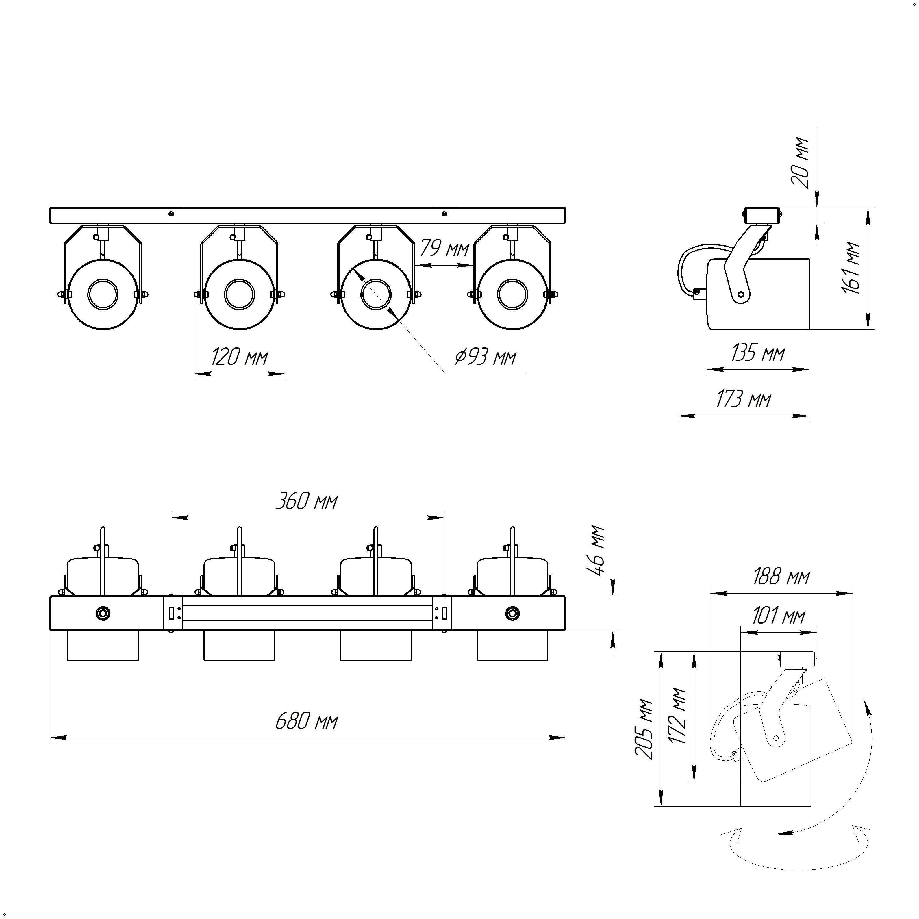 - Количество ламп: 4 шт