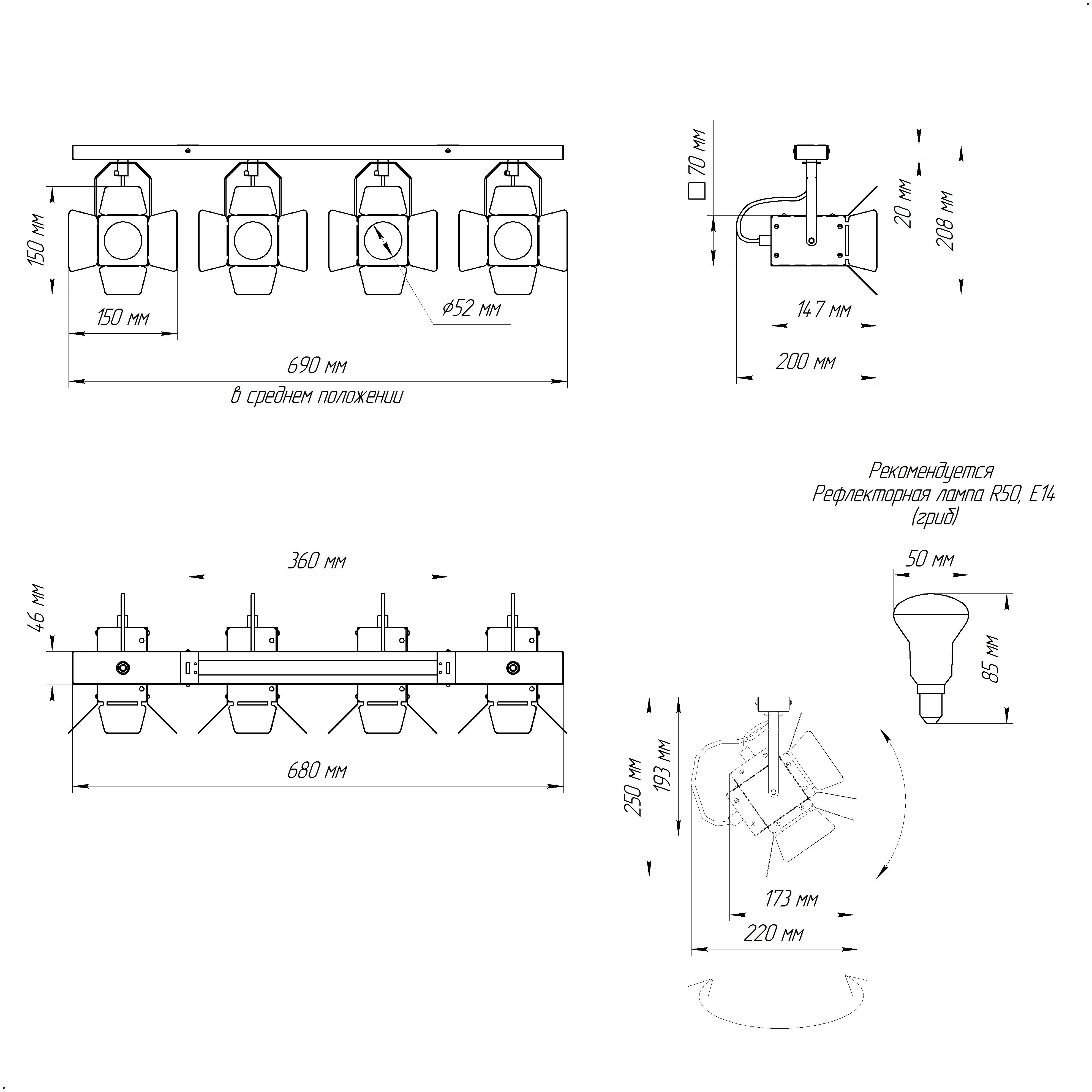 - Количество ламп: 4 шт