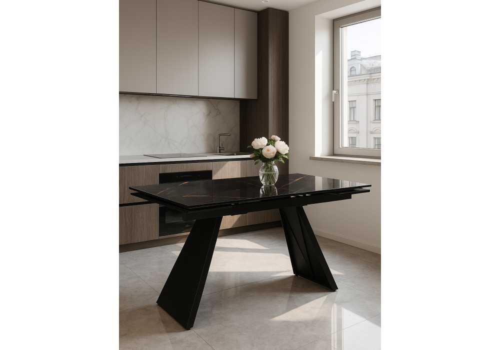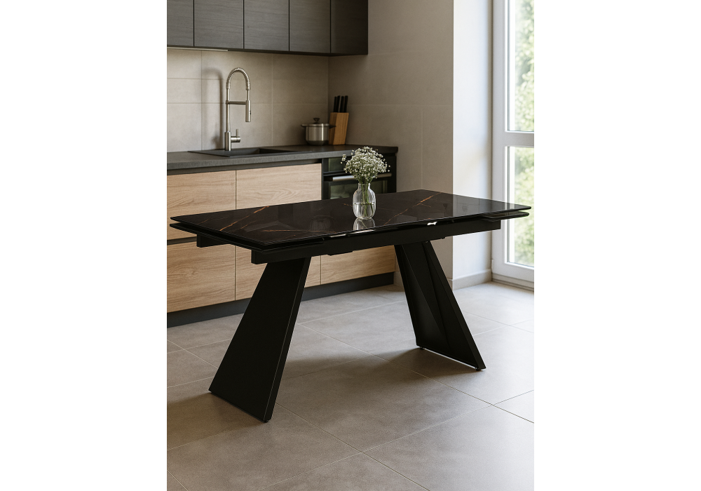 Стол стеклянный раздвижной Woodville Хорсборо 140(200)х80х79 обсидиан / черный 588007 в Подольске
