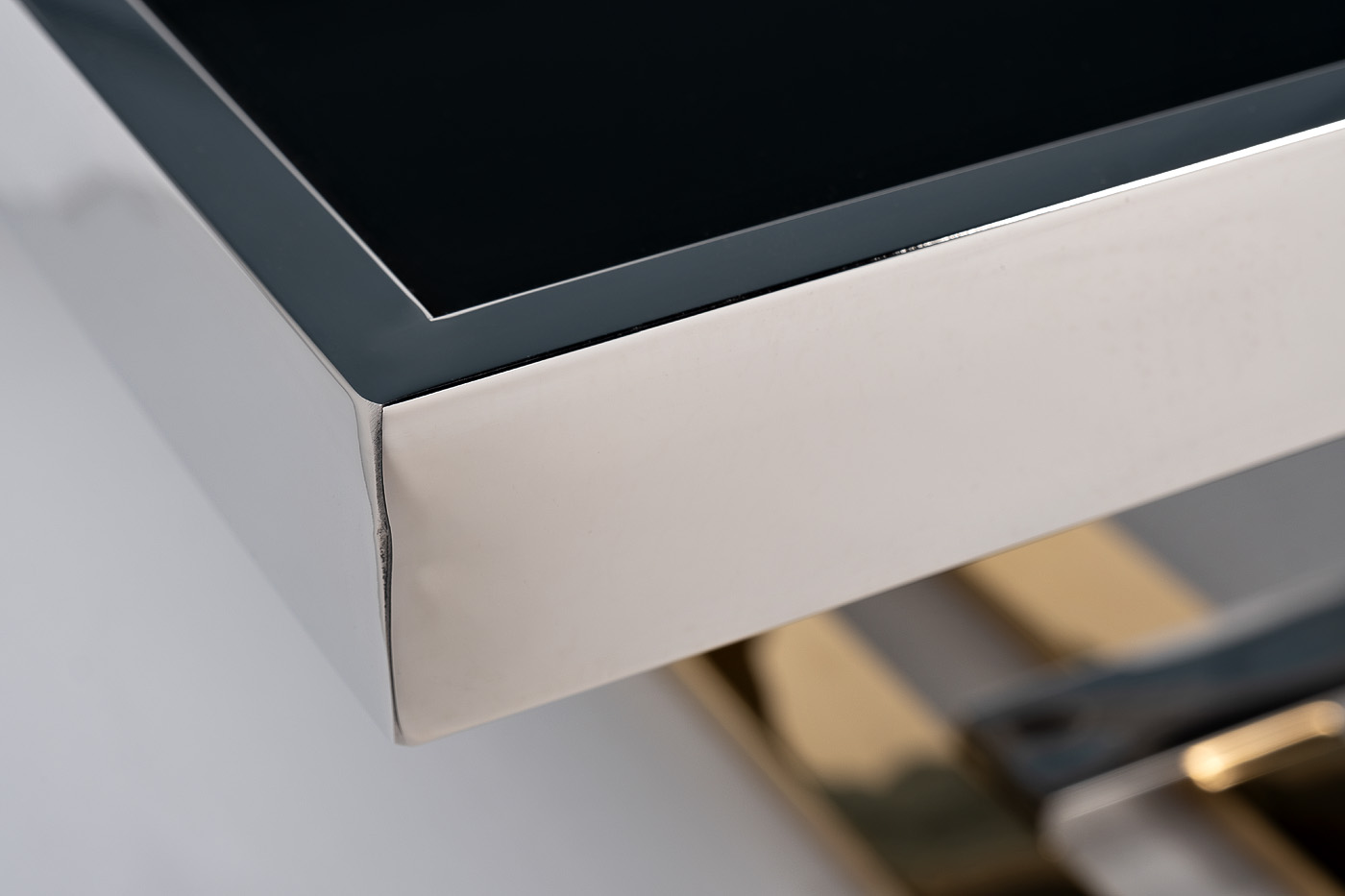 Современный дизайн, минимализм, оригинальность формы и элегантность — вот как можно описать столик с черным стеклом. В этой модели все гармонично - сочетание закаленного стекла и нержавеющей стали, черного классического цвета с опорами в оттенке золото и хром. Прослеживается четкая геометрия, строгие линии, что делает столик в современном стиле привлекательным для владельцев помещений, выполненных в стиле авангард, фьюжн, модерн и контемпорари. Данный предмет способен повысить статус своих владельцев. Можно установить столик в гостиную, спальню или рабочий кабинет.