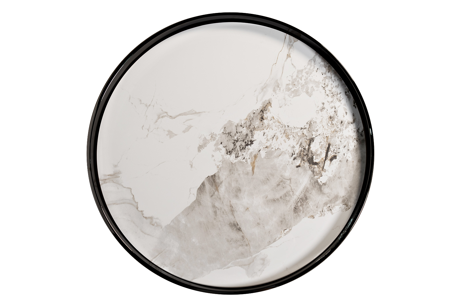 Этот журнальный столик — воплощение смелого диалога между материалами и оттенками. Его идеально круглая столешница из белоснежного керамогранита, вдохновлённого мраморным рисунком с его тонкими, едва уловимыми прожилками, излучает чистоту и легкость. Этот светлый акцент парит над строгим, графичным основанием из нержавеющей стали цвета черного хрома, создавая визуально притягательный контраст. Высокий бортик столешницы не только добавляет функциональности, но и подчеркивает четкость линий, присущую минималистичному дизайну. Тонкие, но прочные ножки, сходящиеся внизу, формируют устойчивую и при этом воздушную конструкцию. Такой дизайнерский столик органично впишется в пространство, где ценятся динамичные сочетания и современная эстетика. Этот объект не просто дополняет интерьер, он активно формирует его характер, привнося баланс утончённого вкуса и актуальных интерьерных трендов через игру света и тени на своих контрастных поверхностях. Толщина столешницы - 10мм.