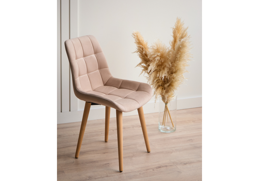 Материал каркаса - дерево; Материал сиденья - велюр; Материал обивки - велюр; Цвет ножек - натуральный; Ширина - 50; Глубина - 60; Высота - 80; Ширина сиденья - 44; Глубина сиденья - 41; Высота сиденья - 48;