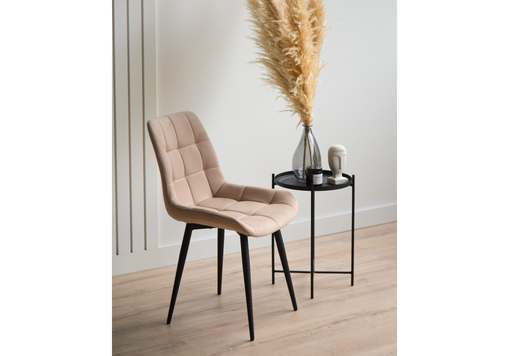 Материал каркаса - металл; Материал сиденья - велюр; Материал обивки - велюр; Цвет ножек - черный; Ширина - 50; Глубина - 60; Высота - 80; Ширина сиденья - 44; Глубина сиденья - 41; Высота сиденья - 48;