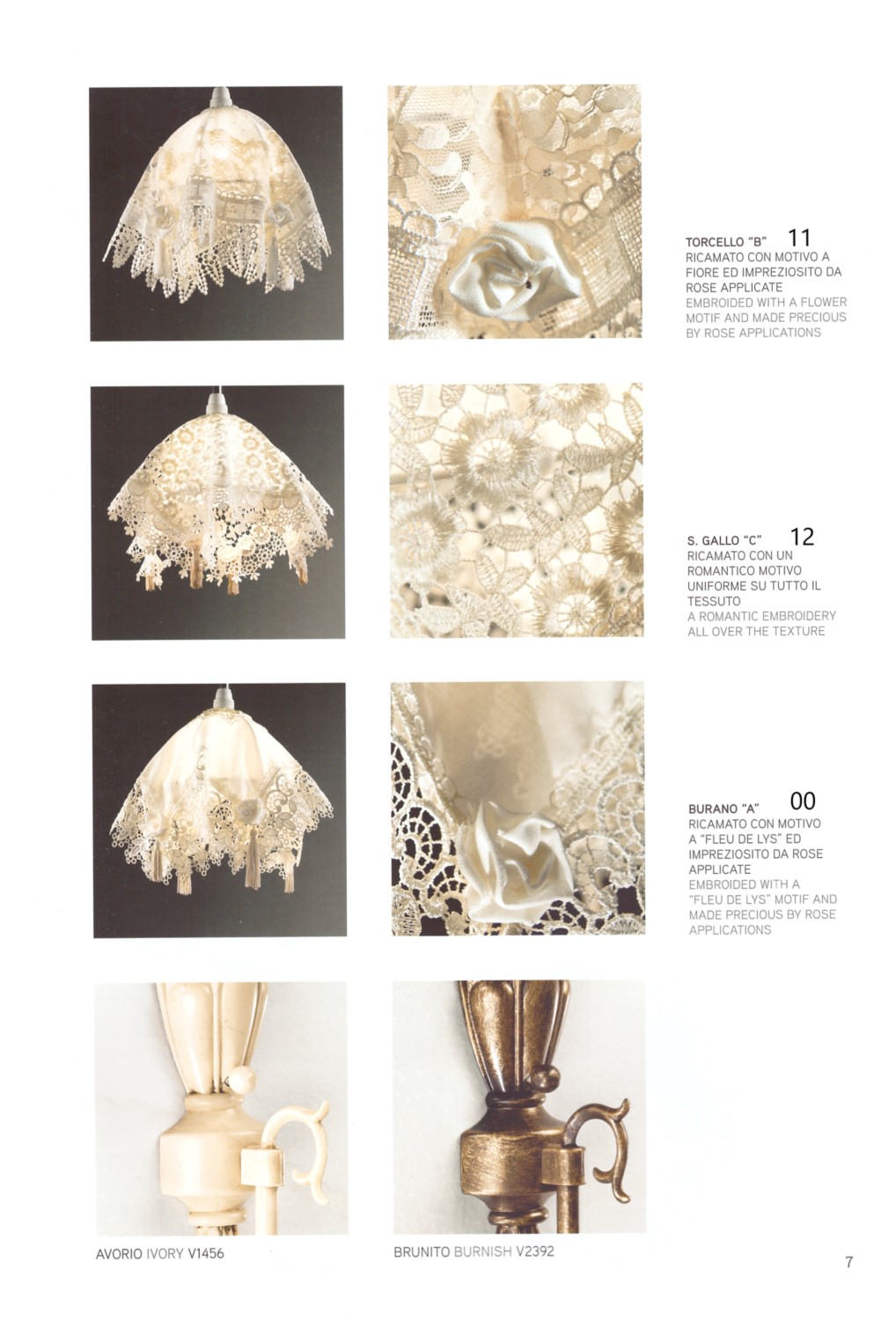 В коллекции Burano проработано все до мелочей: и нежное кружево абажуров в нескольких цветочных мотивах, и основания, выкованные и отшлифованные вручную.