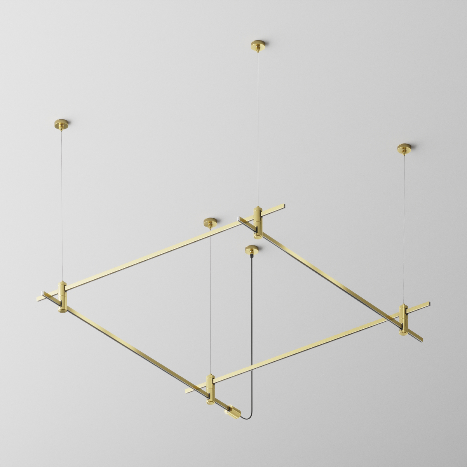 Подвесная конструкция системыFlarityквадратнойформыстросовыми подвесами . Светильники и блоки питания приобретаются отдельно, в зависимости оттребуемого проекта. Данную модель TFC-Flar-H08-BS спешите купить с быстрой доставкой в магазине 220svet.ru