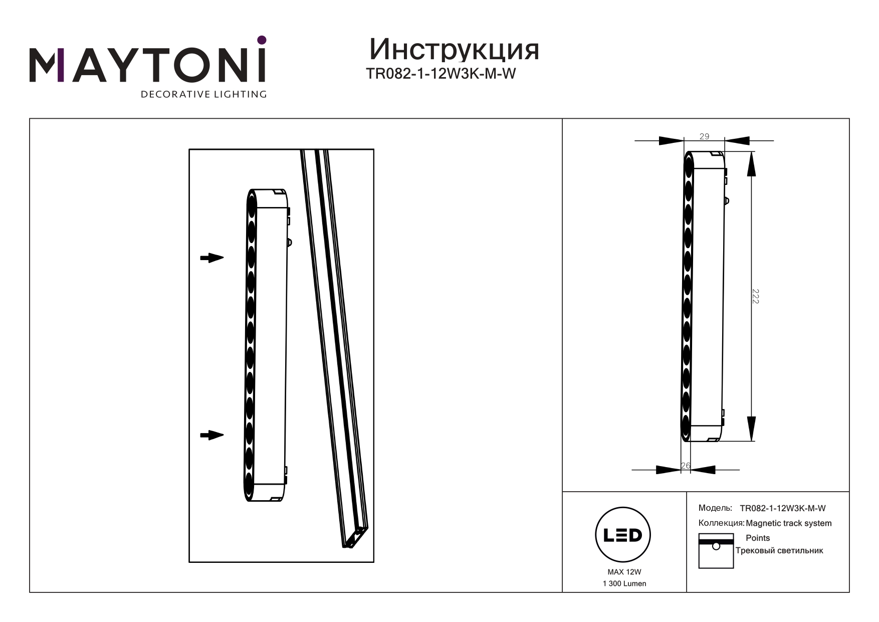 Трековый магнитный светильник Maytoni Points TR082-1-12W3K-M-W в Подольске