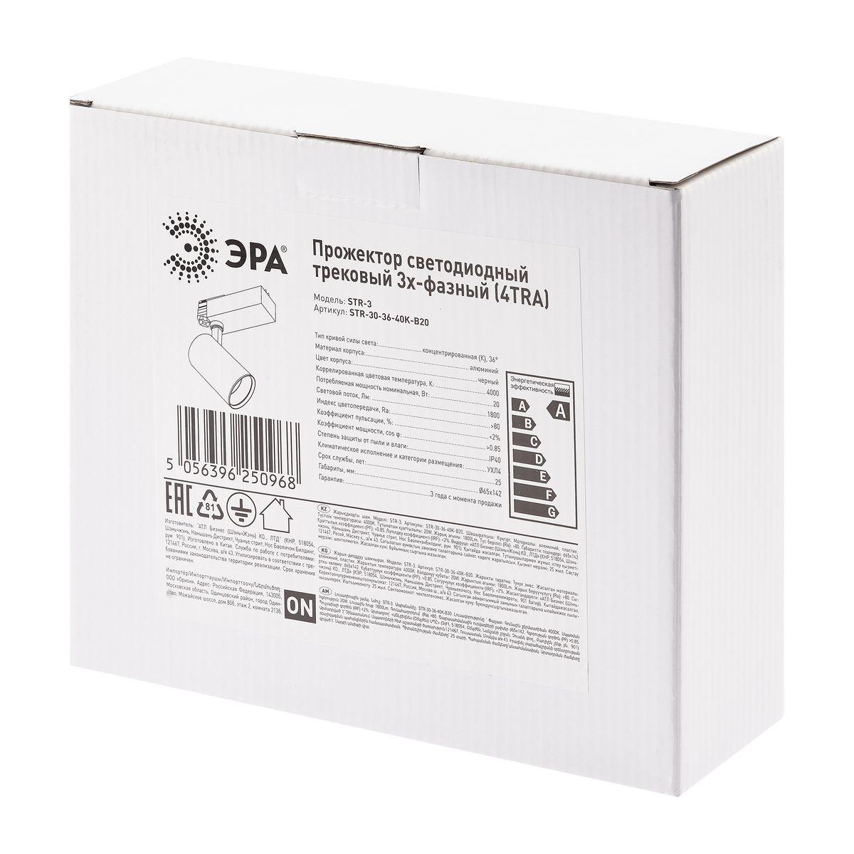 Трековый светодиодный светильник ЭРА SТR-30-36-40K-B20 Б0049763 в Подольске