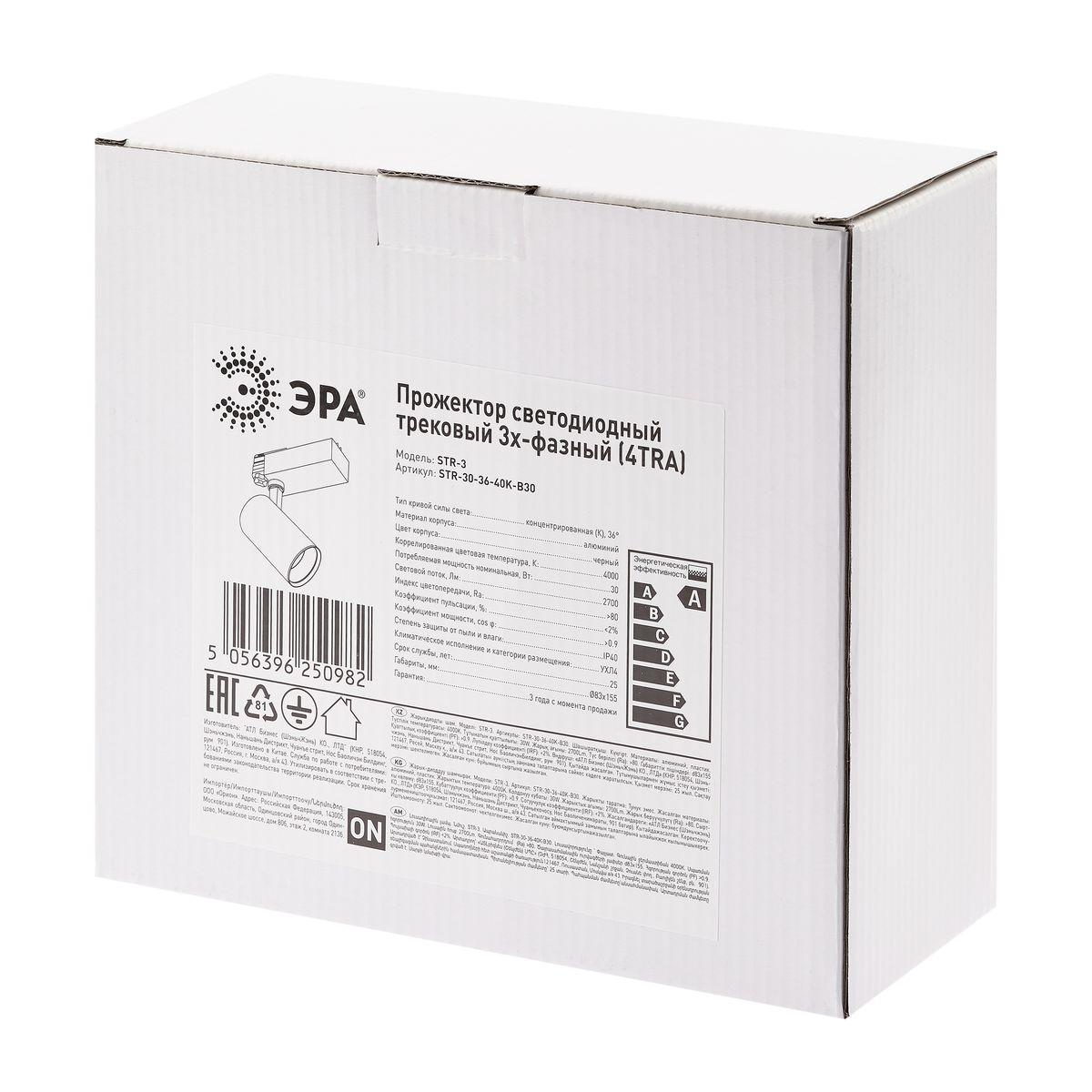 Трековый светодиодный светильник ЭРА SТR-30-36-40K-B30 Б0049766 в Подольске