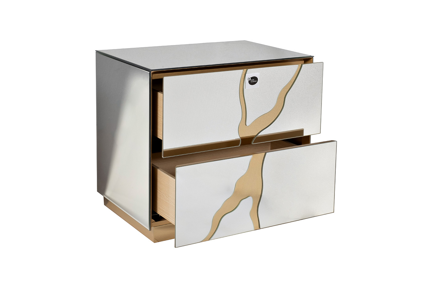 Дизайнерская зеркальная тумбочка сделает обстановку более изысканной и эффектной, ведь это не просто мебель, а полноценный декоративный элемент интерьера. Она компактная, но вместительная за счет двух выдвижных ящиков. Сочетание зеркальных поверхностей и позолоченной стали придает мебели шика. За счет такого смелого дизайна прикроватная тумбочка с ящиками выглядит очень нарядной и составит компанию кровати с мягким изголовьем. Она прекрасно впишется в актуальные интерьеры ар-деко, неоклассика, фьюжн.