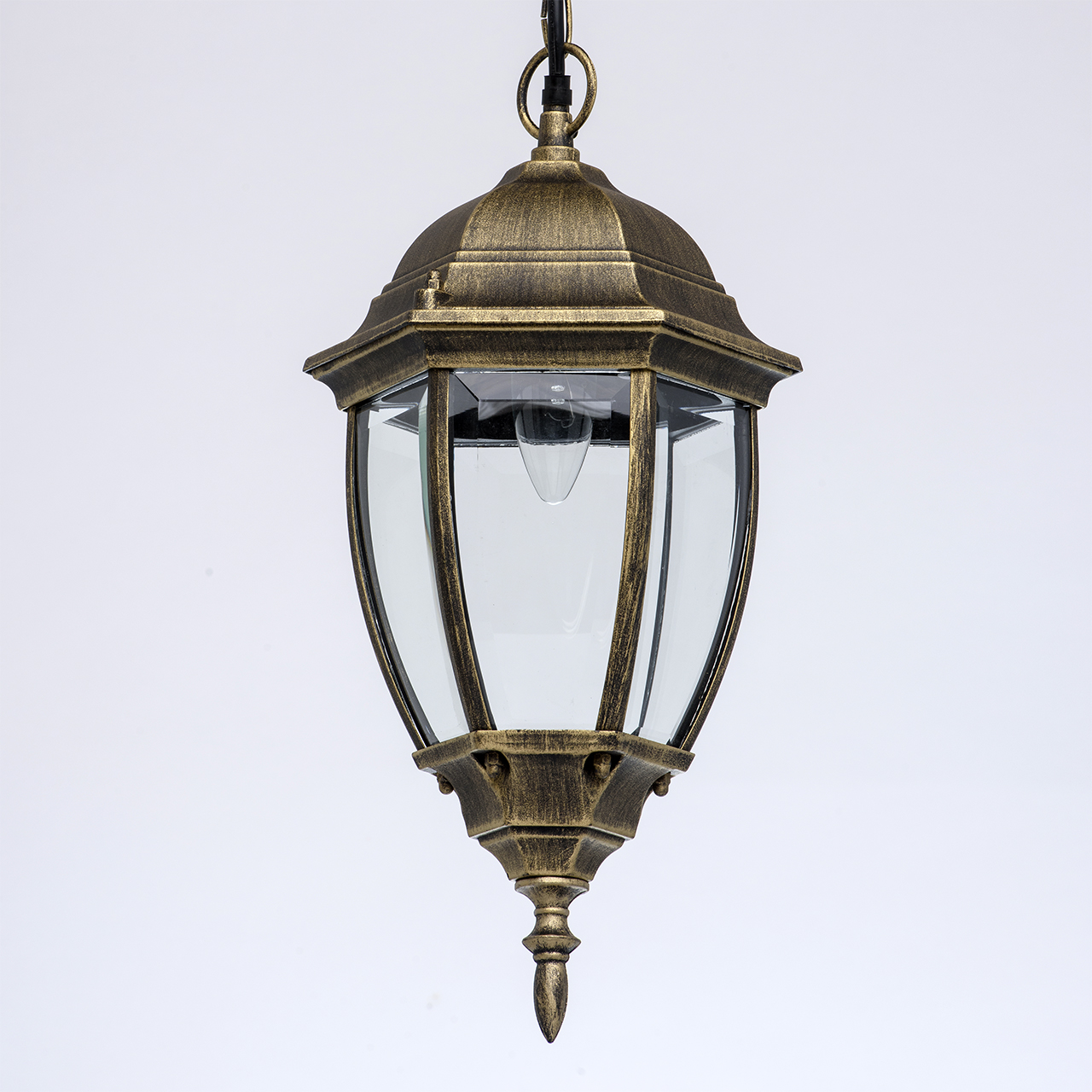 Уличный светильник из коллекции «Фабур» по достоинству оценят любители классики. Основание из алюминия цвета старинной позолоты напоминает об античных временах. Под стать ему – форма стеклянного плафона, традиционная для интерьеров дворцовых замков. Такой светильник идеально дополнит изысканный экстерьер загородного дома, дизайн которого ориентирован на благородную классику. Рекомендуемая площадь освещения порядка 5 кв.м.