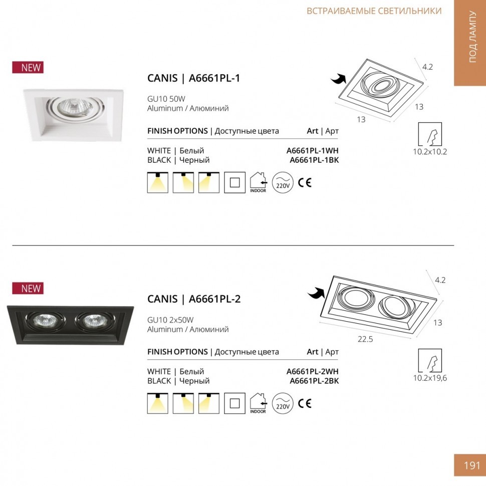 Встраиваемый светильник Arte Lamp A6661PL-2WH в Подольске