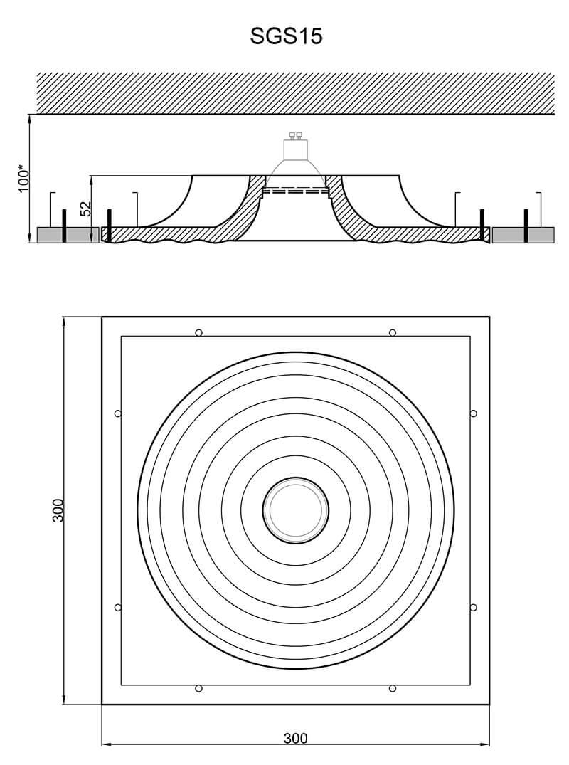 - Диаметр врезного отверстия: 305х305 мм