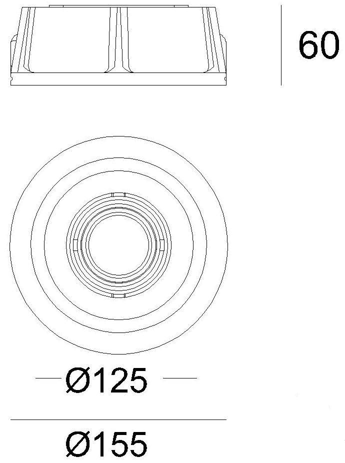 - Диаметр врезного отверстия: 125 мм (12.5 см)