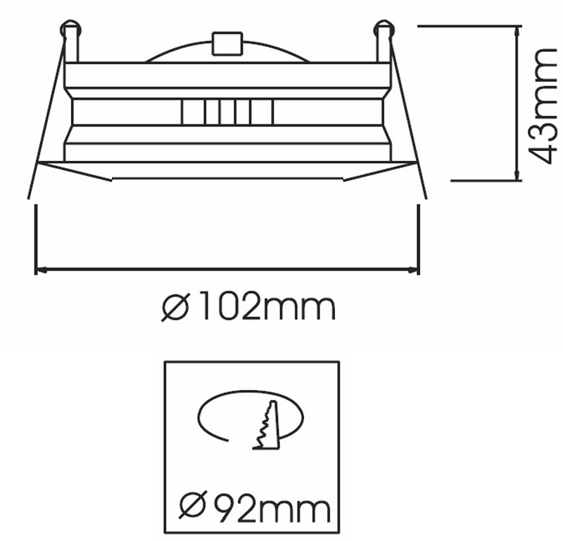 - Диаметр врезного отверстия: 92 мм (9.2 см)