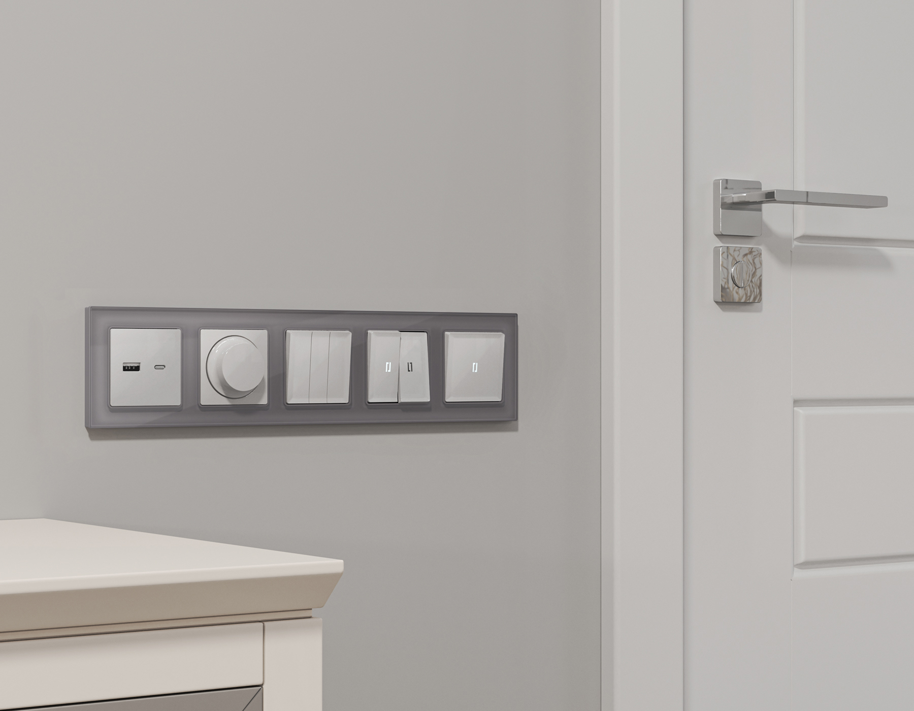 Многогранный ассортимент Ambrella Volt включает в себя механизмы, лицевые панели и рамки, а также комплекты, доступные в различных цветовых решениях. Продукция представлена в модульном исполнении, что позволяет гибко настраивать внешний вид и функциональность. Вам будет легко заменить лицевую панель, рамку или механизм, найдя идеальное сочетание цветов.
